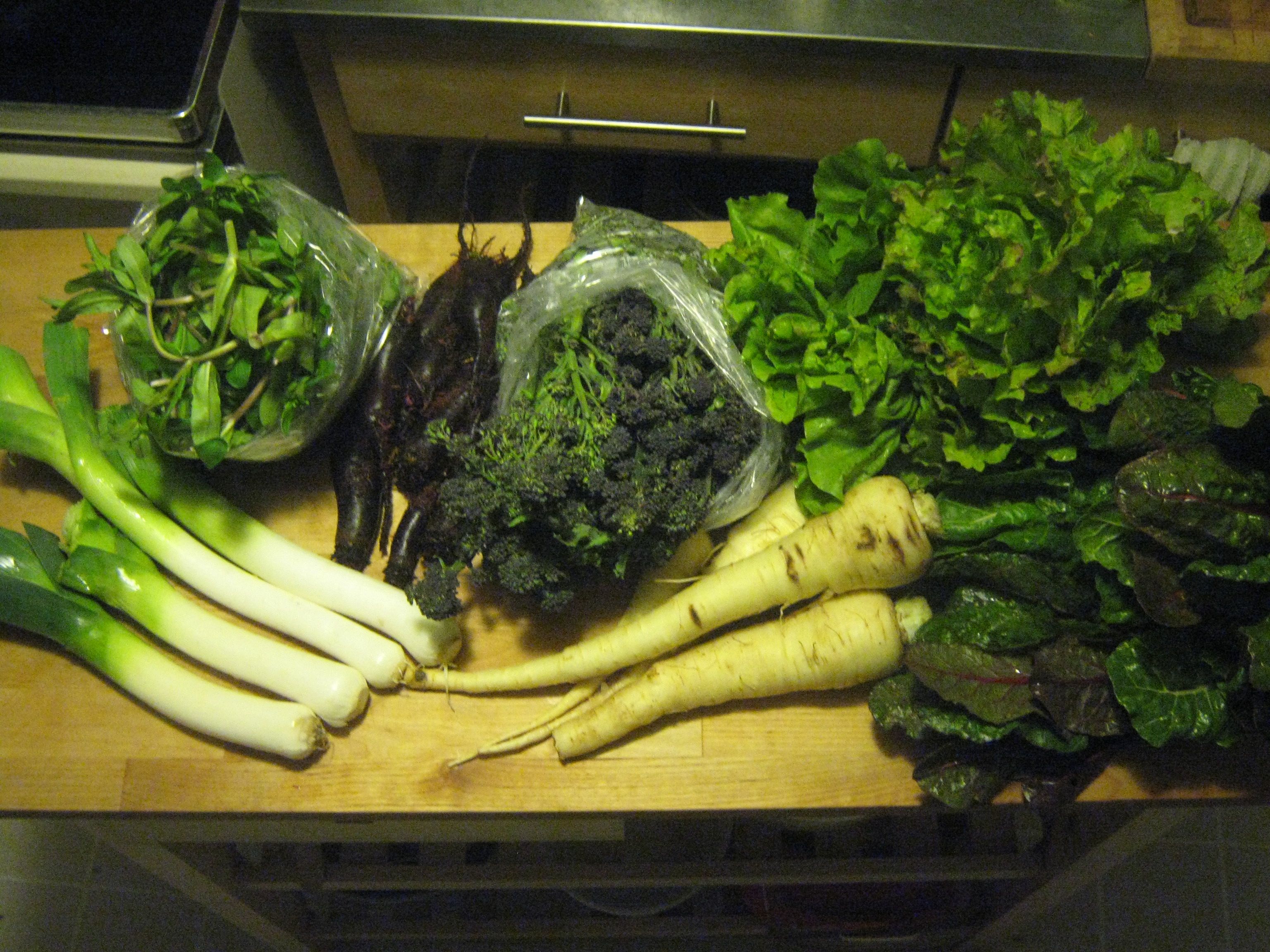 – parsnips – you may have to cut or peel off a few dark spots – these overwintered nicely but won’t last much longer in the ground. Perhaps roast in the oven with the beets?
