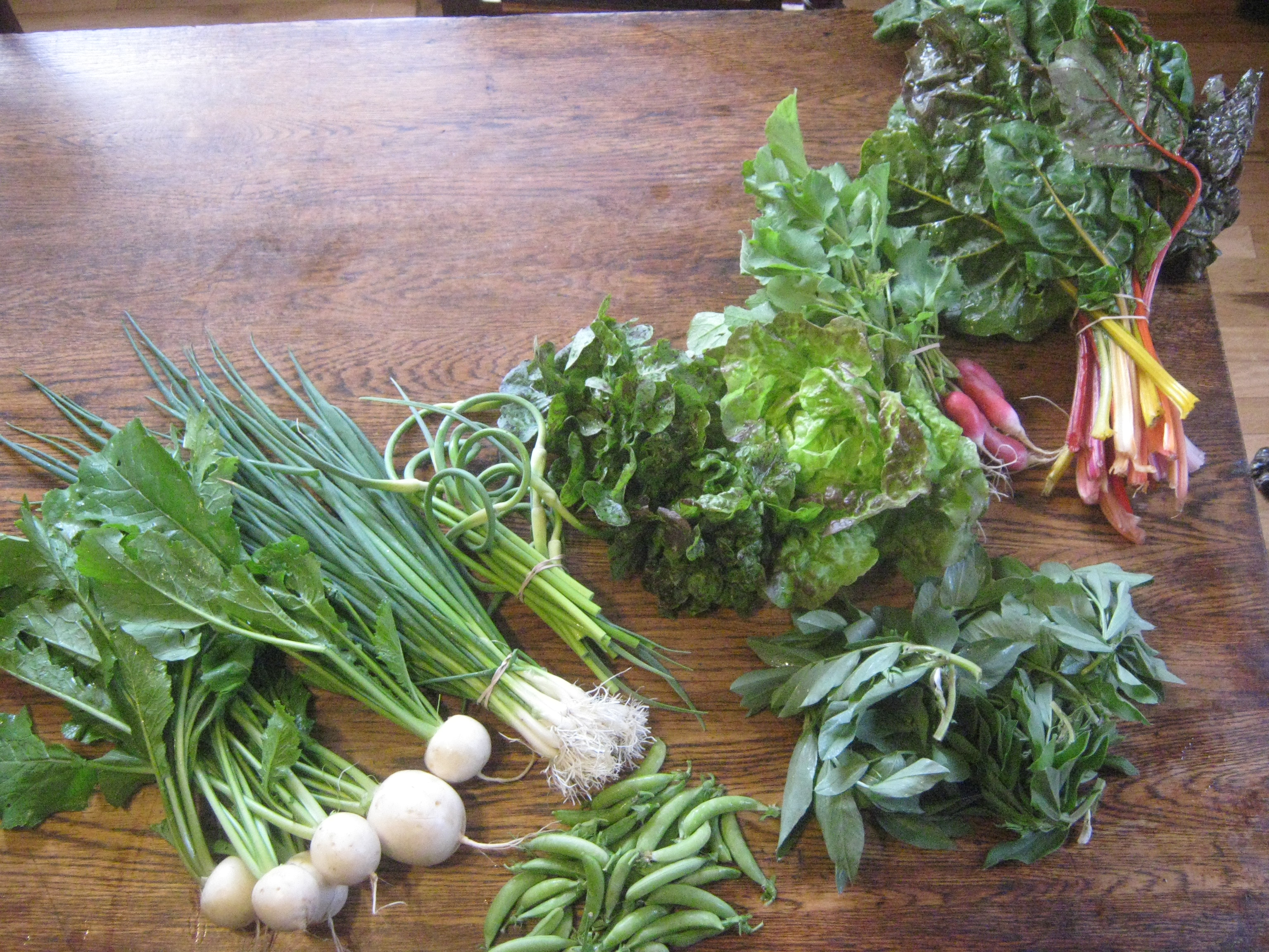 Hey there folks. Happy CSA day. Today’s share is similar to Monday’s (6/10) but without kohlrabi, and with garlic scapes and radishes. So take a look at the 6/10 post for most of the veggie info. Garlic scapes will be coming to the Monday folks this coming Monday 6/17.