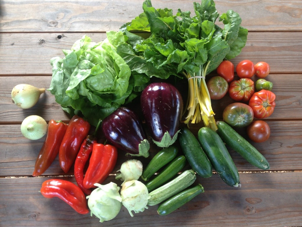 A little kohlrabi late curtain call today – hopefully you won’t find it woody – it has been in the ground a while. Lots of peppers today! Looks like September is going to be pepper month as per usual in this area. All the peppers for the CSA are sweet peppers, so no worries about biting into a hot one. A bit of cukes and zukes as per usual today. Eggplant! Tomatoes! sweet onion oh my! It must be ratatouille time! http://smittenkitchen.com/blog/2007/07/rat-a-too-ee-for-you-ee/
