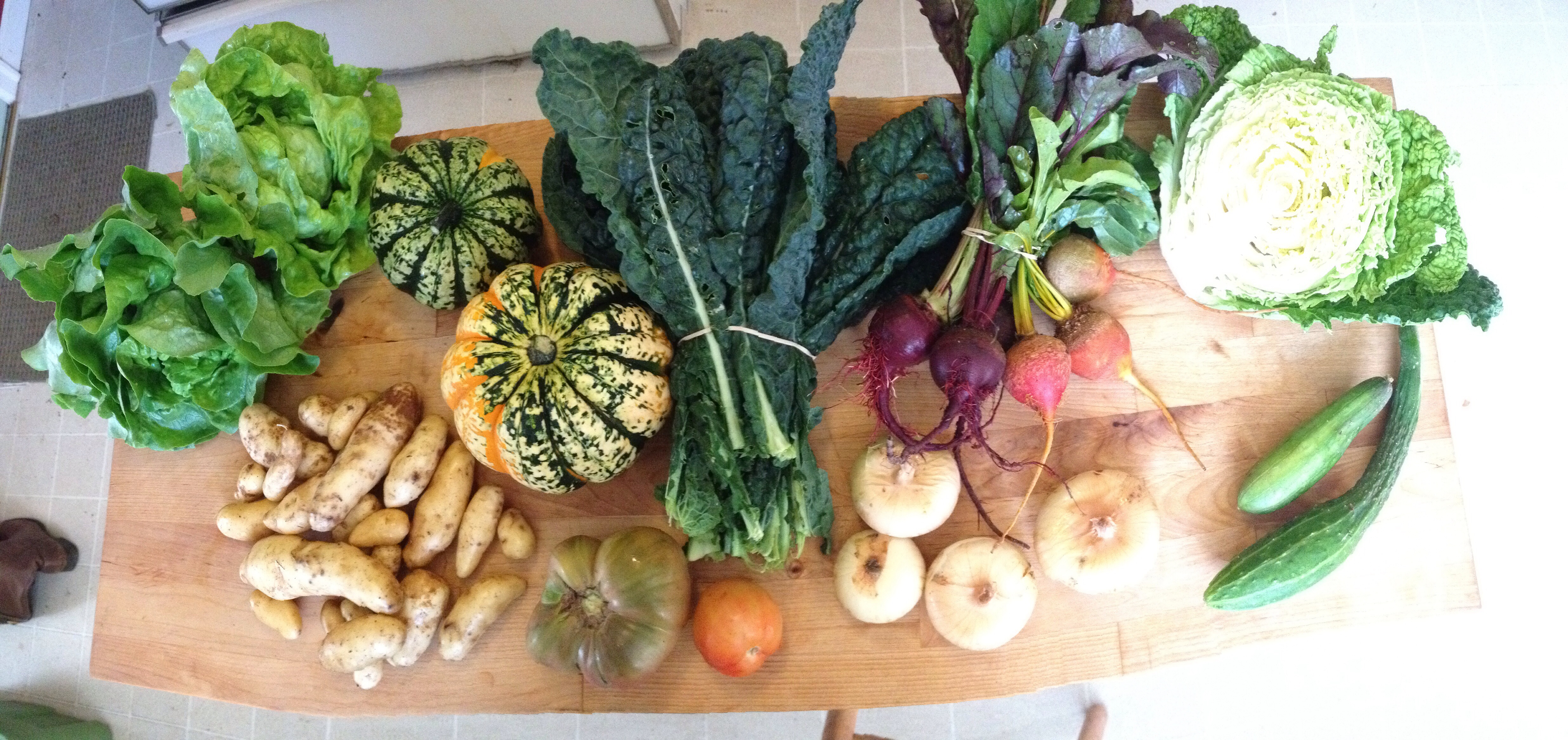 A couple cukes and tomatoes, lacinato kale, and 2 butterhead lettuces round out the share.