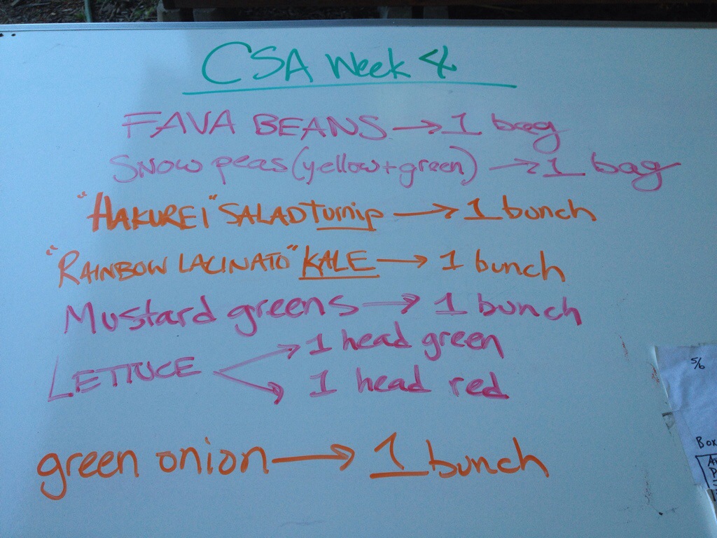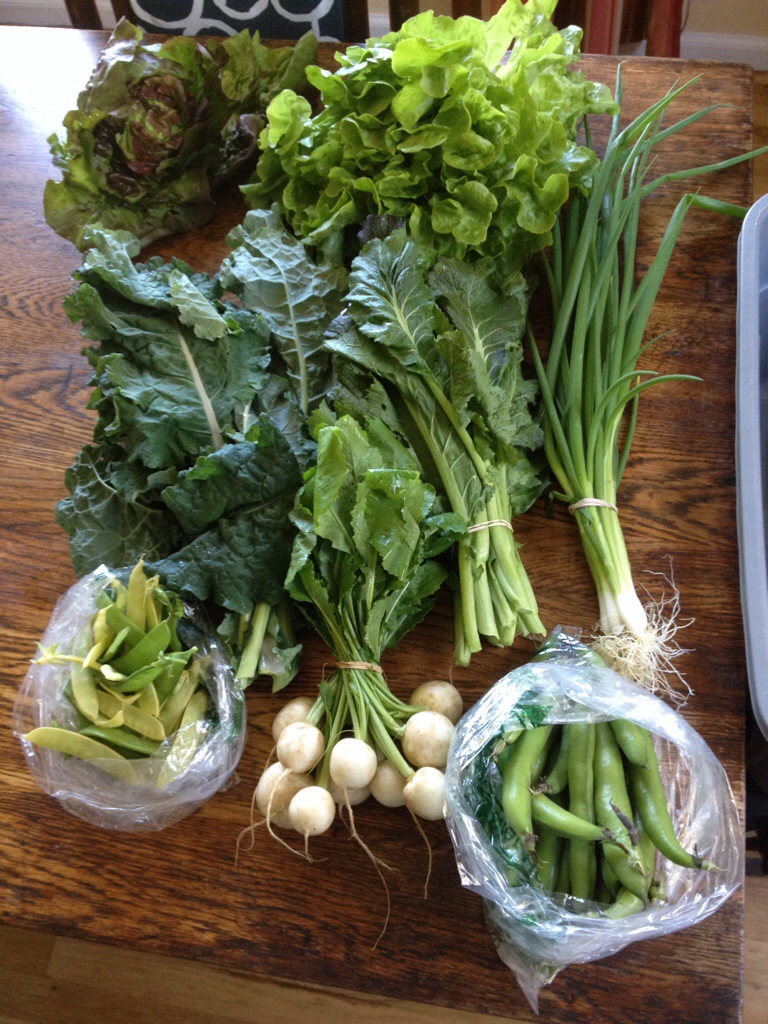 Also new today are the mustard greens. Another braising like kale or chard, mustards have a spicy flavor that is muted quite a bit when cooked. They’d be cooked simply sautéed with the green onions and/or the green garlic from last week.