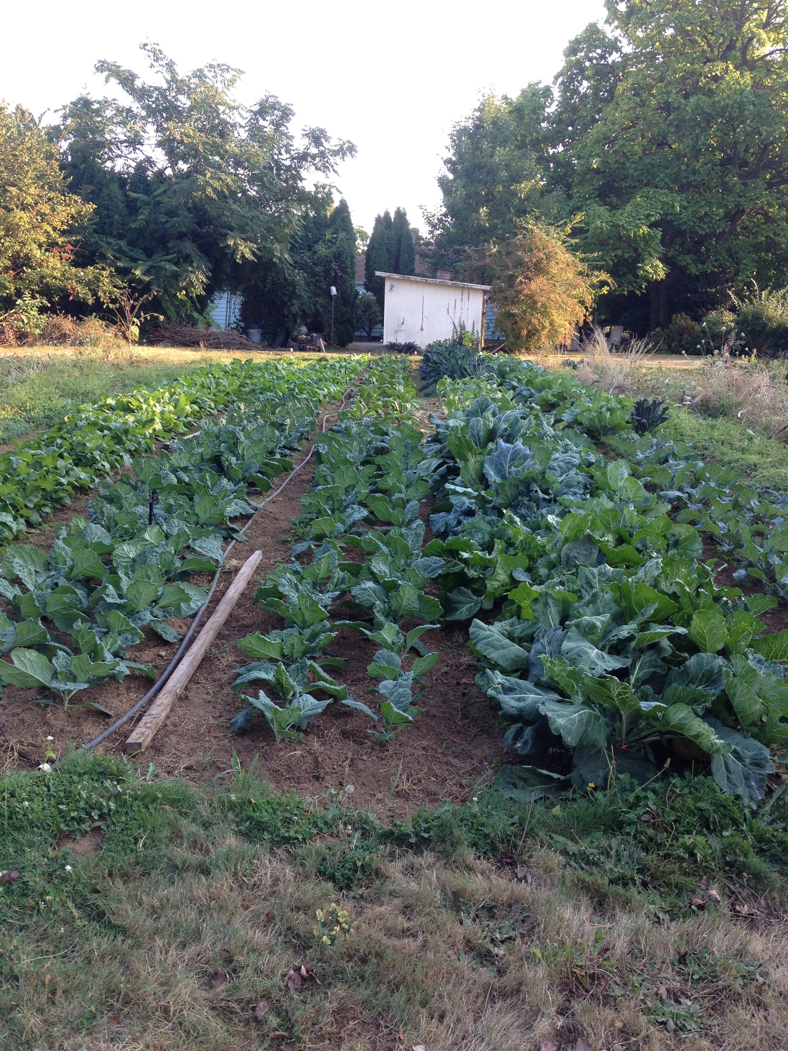 A view of some of the other fall crops at the new “farm annex” plot. Lacinato kale, Champion & Cascade Glaze collards, cabbage, pink swiss chard, purple top turnips, and watermelon radish. The potatoes also grew over here off to the left.