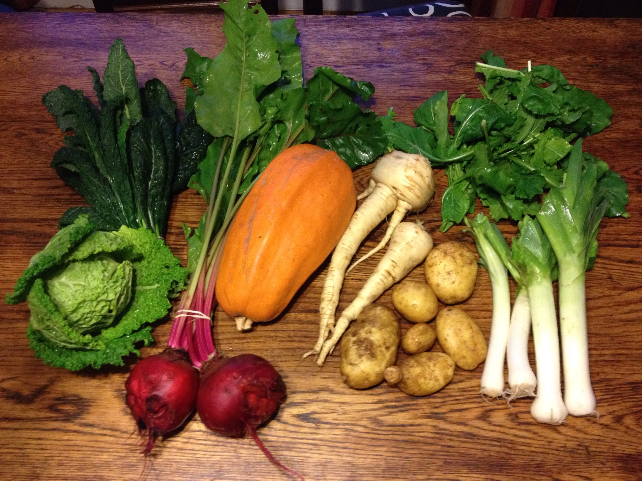 Other players in the share this week: parsnips, leeks, potatoes, beets, savoy cabbage, lacinato kale, and big spicy arugula. The arugula would be good on a sandwich, under a burger or a steak, or in a salad as a spicy addition. Or you could make arugula pesto. The parsnips are a new addition this week. They are great cubed and roasted with other root veggies in the oven with olive oil, salt, and pepper. Or boiled/roasted and then mashed with garlic and butter like mashed potatoes. In fact you can mix parsnips and potatoes in a root mash.