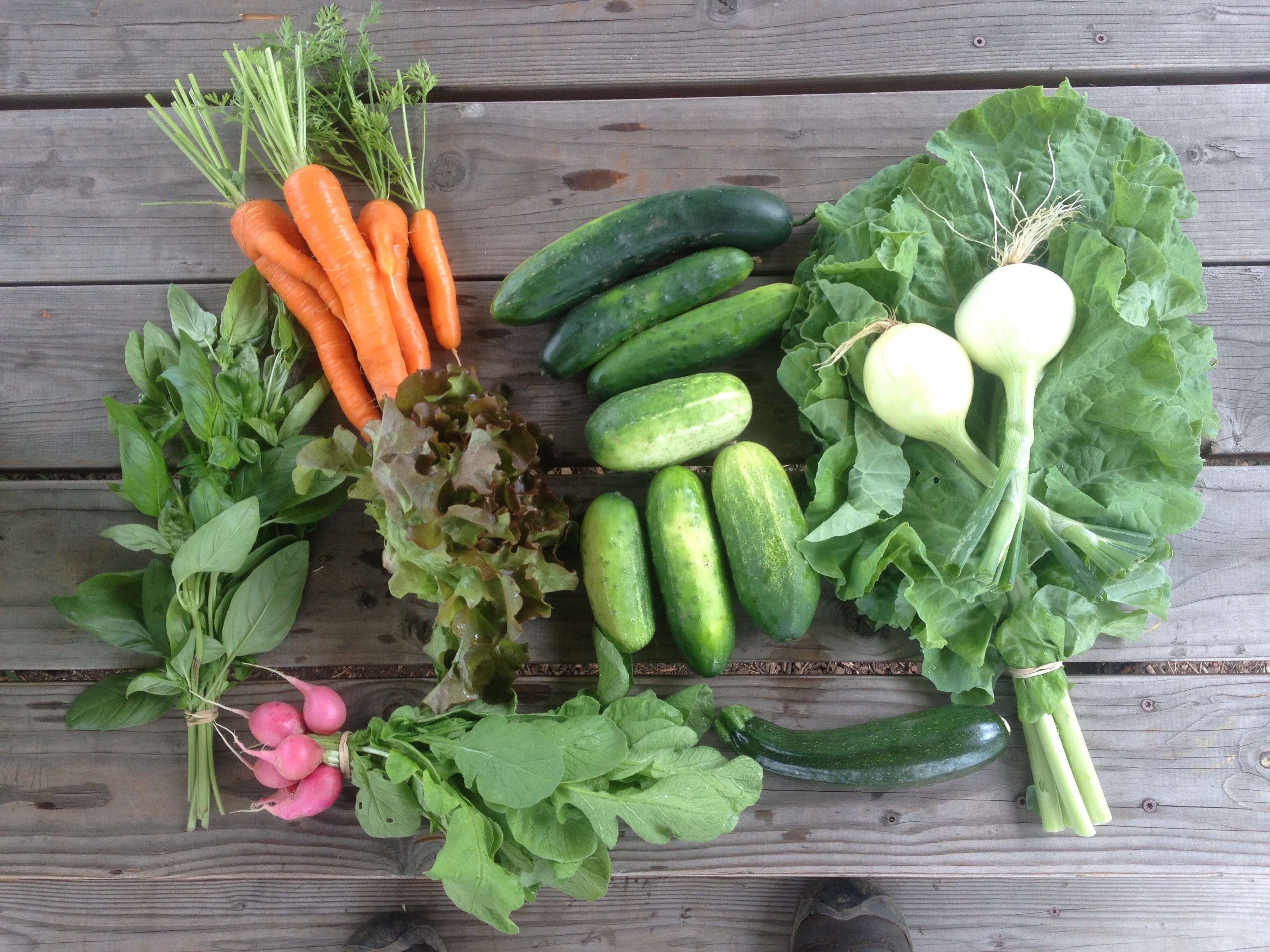 This week the cucumbers are here in a big way. In this week’s share there are: