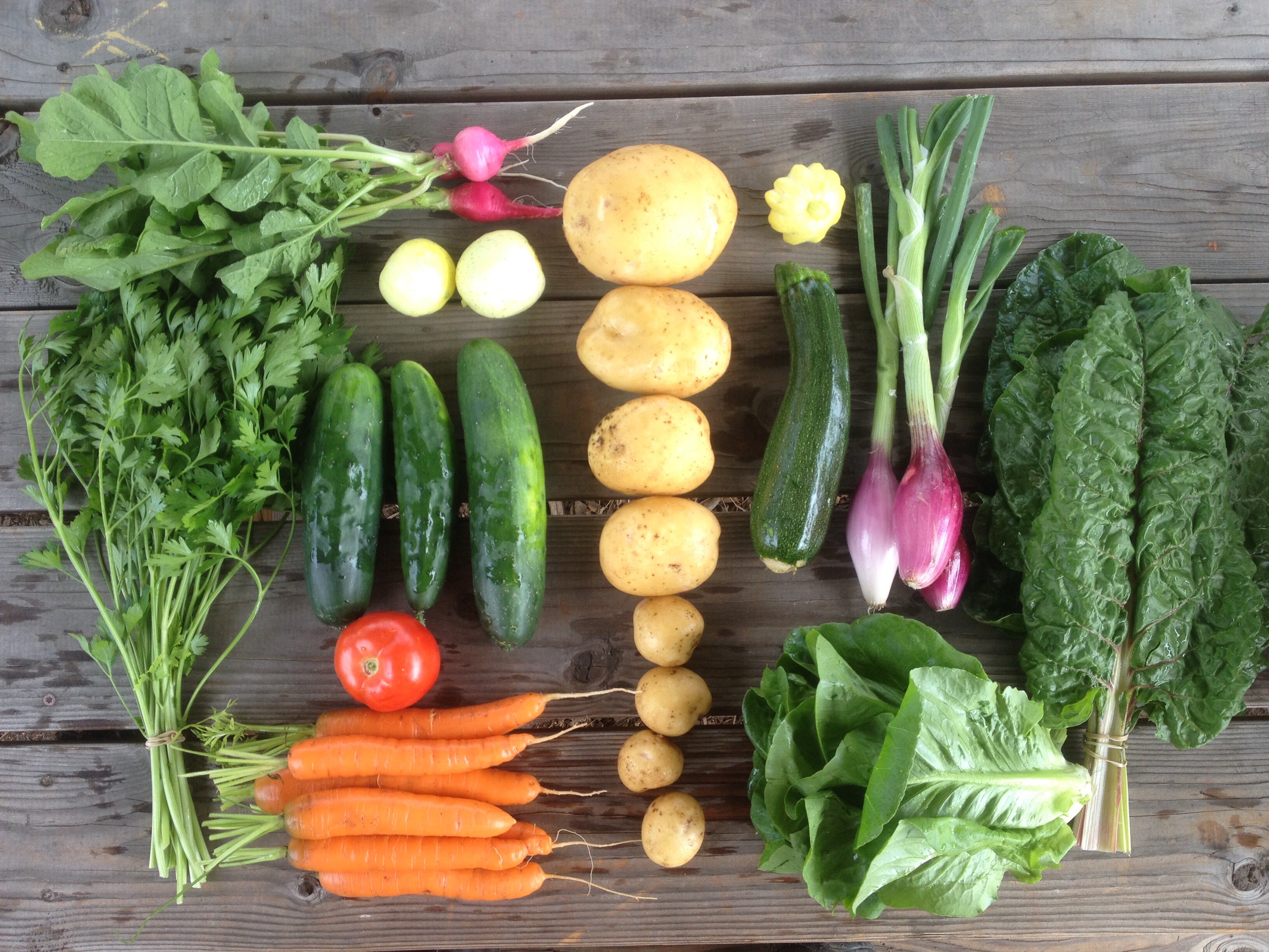 Tomato “New Girl” – The first of the season from the hoophouse – just one per share. New Girl is an all-purpose slicing tomato. A few shares got the heirloom “Black Krim” which is the other variety in the hoophouse. Many more varieties will be coming later from the field plantings.
