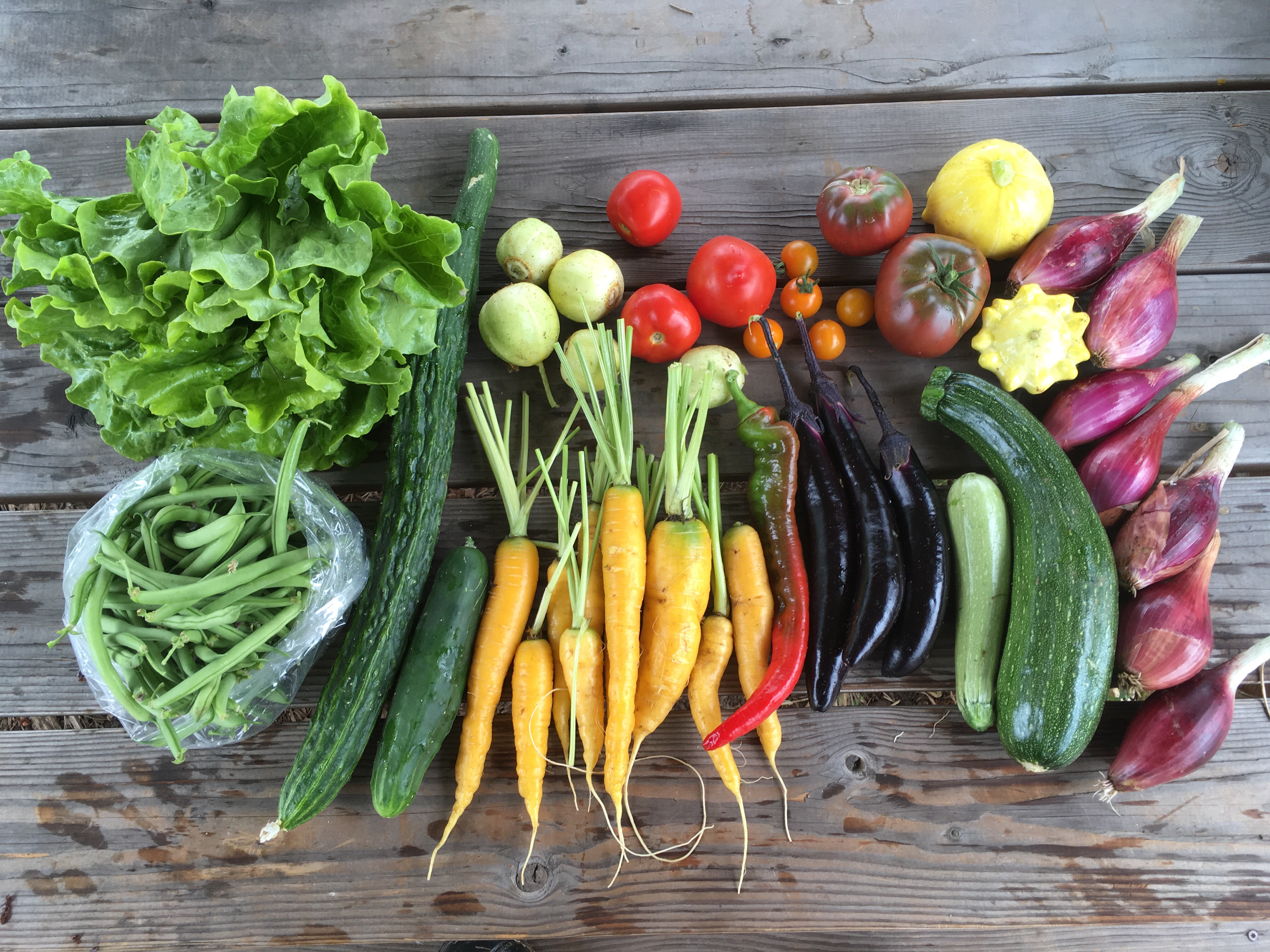 Cucumbers – The regular variety of shapes and sizes this week. NOTE: If anyone wants to buy pickling cucumbers at $2.25/lb, please get in touch.