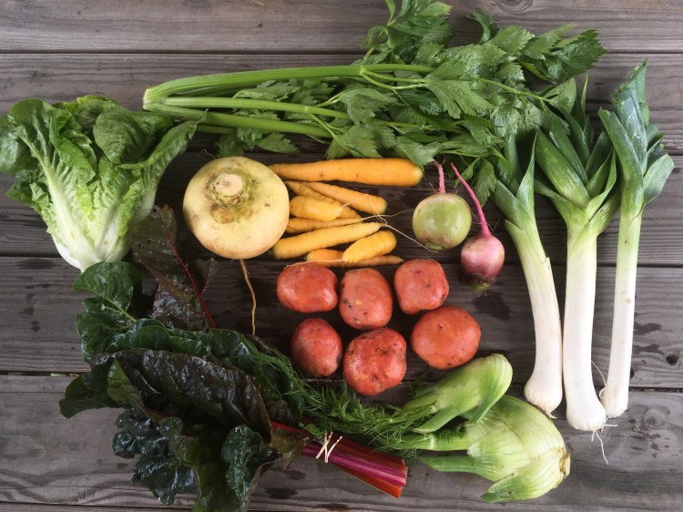 Roasted potatoes & fennel (you could add the turnip, radish, carrot, and leeks in there as well if you dare!)
