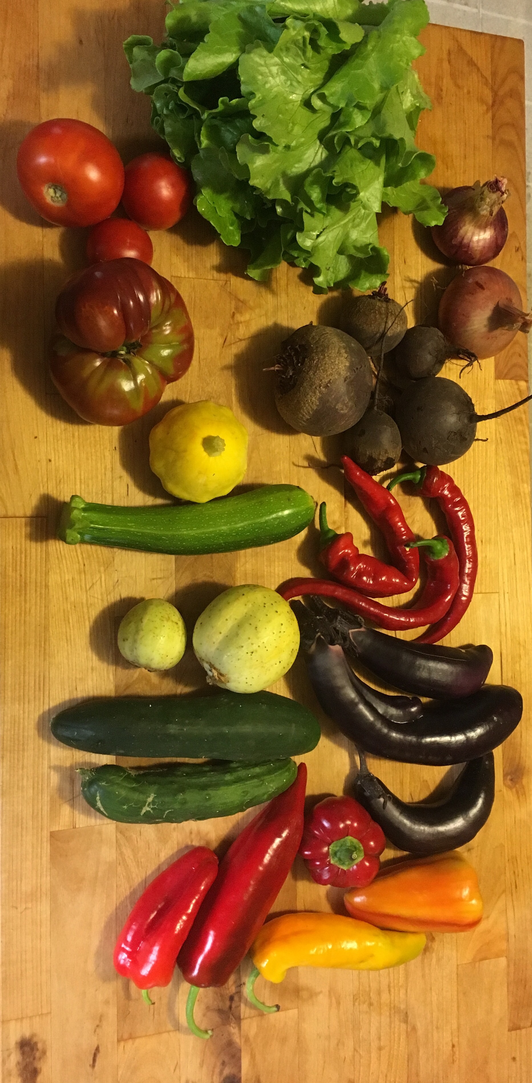 It was a smoky and ashy harvest day Tuesday from the forest fires to the east. I never imagined we’d be harvesting in respirators, but the air was pretty intense so it definitely felt like the thing to do. Ash covered everything outside but luckily it’s not a food safety issue. Just make sure you wash all of the produce well this week.