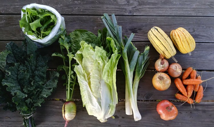 Also new this week is delicata winter squash, possibly my favorite because it’s so easy to use. Like any winter squash you can roast it, but with delicata the skin is delicate enough to be edible as well, so you can also slice it and saute it in a pan. Nice for when you don’t feel like turning on your oven! But if you are turning on your oven, go ahead and roast your leeks, onions, and carrots in there as well.