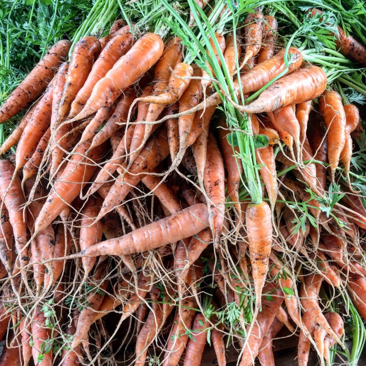 So fun to have a nice harvest of carrots in this week’s share. Next week is the final week of spring and it’s looking like a good one. As predicted a few items in today’s share varied from Monday, specifically we swapped in snow peas in place of snap peas, and basil in place of parsley. Next week we’ll try to reverse the flip to even things out. New next week should be mini heads of cabbage, and beets. Favas are another possible addition and there are a number of likely returns like lettuce and kale.