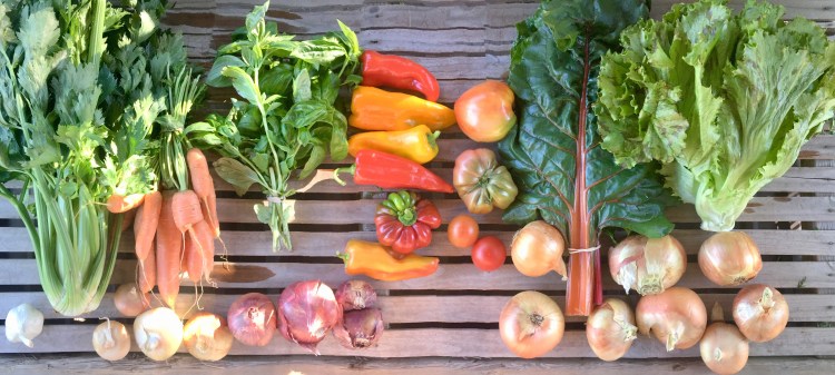 Pretty much as predicted this week. The share has a big head of celery, carrots, chard, lettuce, and the remaining basil, sweet peppers and tomatoes.