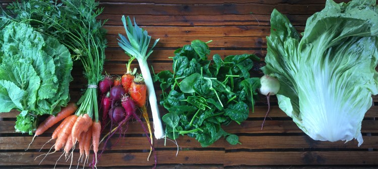 In today’s share: collard greens, carrots, mixed beets, a leek, watermelon radish, spinach and sugarloaf chicory.