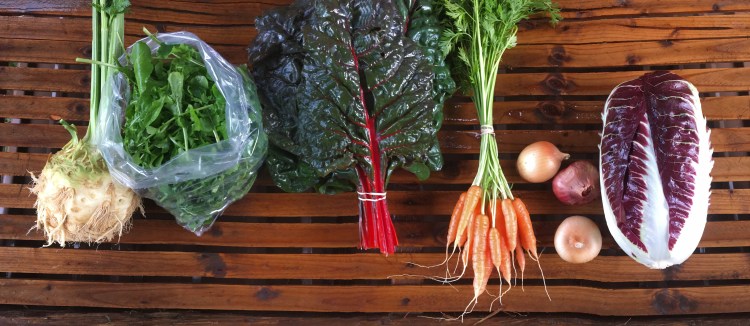 A little smaller share today as we approach the end of the fall season (only one more week of harvests after this week). Big heads of Treviso red radicchio with beautiful, sweet, crunchy white ribs, and giant celeriac are the centerpieces of the share this week. We left some of the tops on the celeriac because it’s looking good and tasting sweet and while it’s not as tender as stalk celery it’s still good for cooking and flavoring dishes.