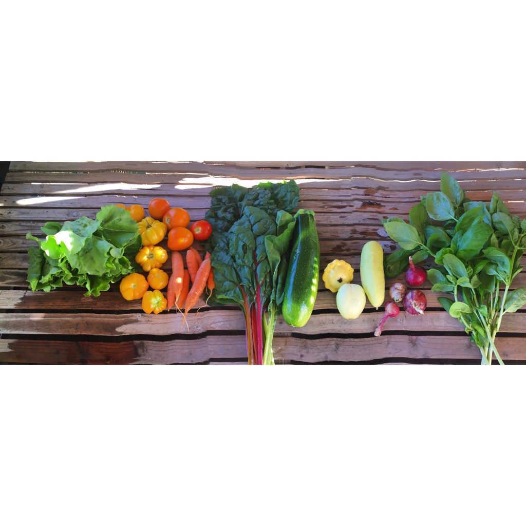 Today’s share has: a small head of lettuce, tomatoes, carrots, chard, summer squash, cucumbers, mini red onions, and basil. I don’t typically go for baby vegetables, but for some reason this year, at least this week, that’s what we seem to be getting from the field. I suspect the field that the onions are in is experiencing some competition from a large tree that’s nearby. We’ve also been having trouble with germination on our carrot plantings, which is leading to extra weed pressure and smaller carrot sizes. We also have a lot of smaller tomatoes right now because those are the early ones and the ones that do well for us in general. The lettuce growth is really slowing down as the days get shorter, and really that goes for all of the vegetables at this moment. I think we’re also seeing some impact from the extreme heat wave at the beginning of July, right when a lot of these plants were getting planted. For the most part the warm, sunny summer has been good for growth, but when it’s getting into the 90’s it actually slows things down.