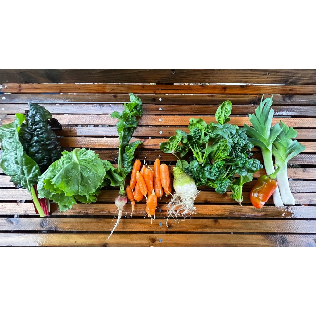 Everything is a bit smaller that we were hoping for, just the way the season shaped up in the end. The winter radish is a watermelon type, and the rutabaga is a very sweet one called Gilfeather’s Turnip. The sweet peppers are a kind of bonus round, thanks to the sunny, warm weekend weather. Looking at the 10 day weather forecast I’m pretty sure those will be some of the last sweet peppers of this year.
