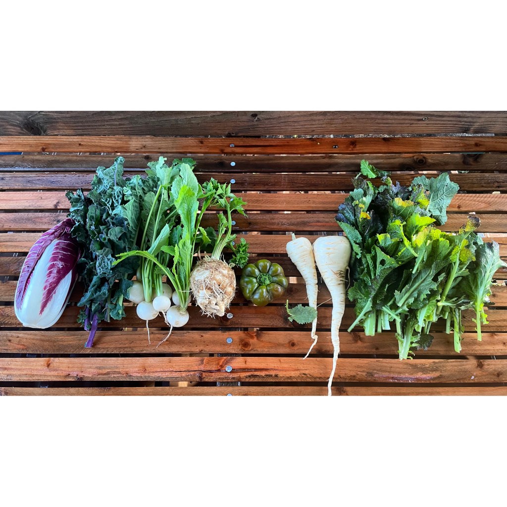 In today’s share: treviso radicchio, kale, Hakurei turnips, celeriac, sweet pepper, parsnips, red mustard. On the farm stand we had radicchio, kale, collards, lettuce, fennel, celery, saladette tomatoes, popcorn ears, grind-your-own polenta corn, and daikon radishes. Thursday’s share should be similar. I’m not sure we’ll get enough treviso for everyone but we’ll have other radicchio if not.