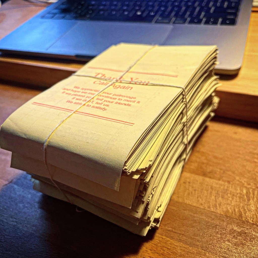 Last night I got the last of the farm stand receipts entered into Quickbooks and sent out statements to anyone who had a balance over their credits. The stack above is all of the farm stand receipts from 2021! If you think you owe us for farm stand purchases in 2021 check your email for a statement. If you don’t see one it’s probably because you don’t, but we’re happy to send you a full accounting if you’re not sure.