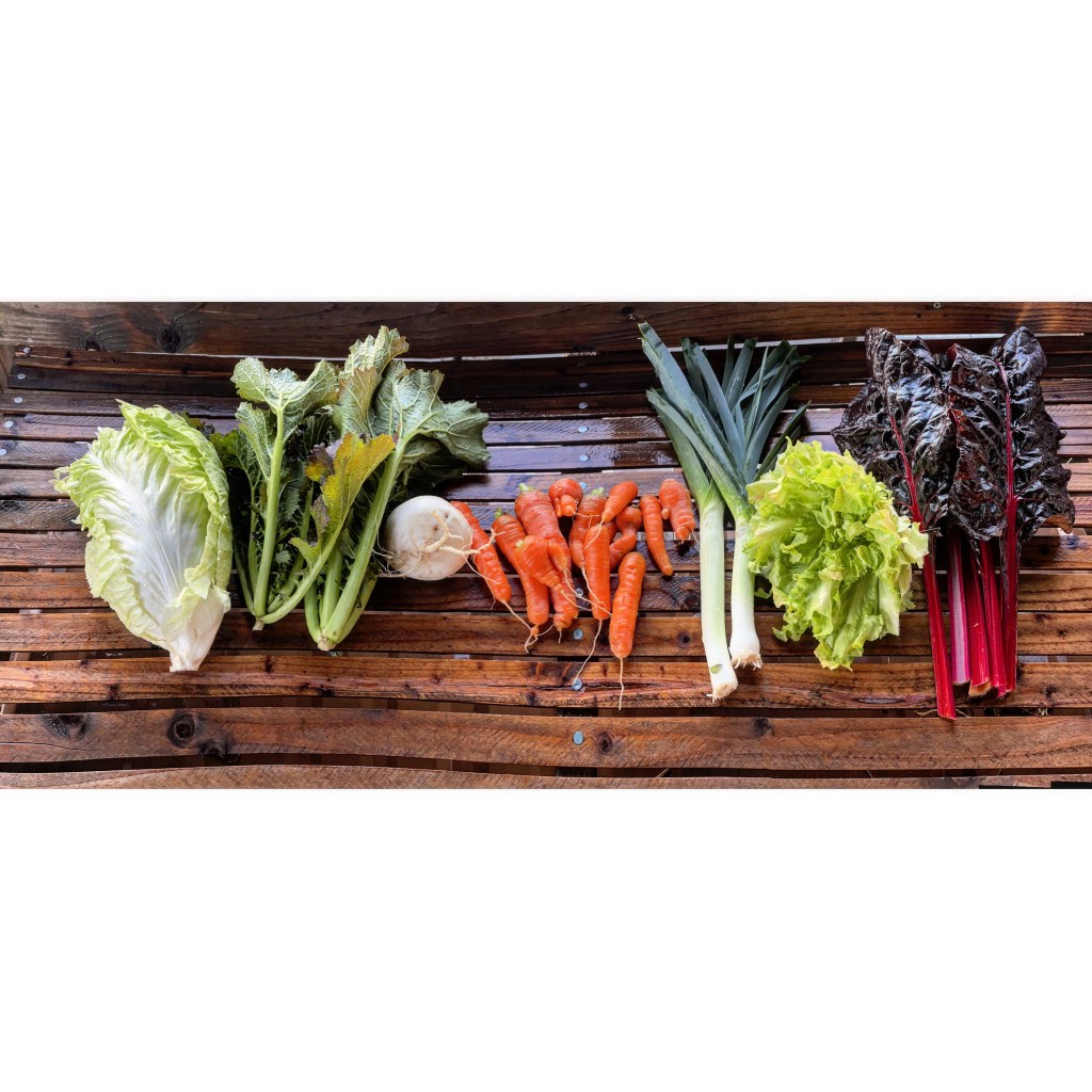 The radicchio for Thursday is sugarloaf but Monday will likely be a mix of types. The turnip is a new one for us, Aprovecho Hardy. The leeks are the first harvest of our winter variety, blue solaise. Escarole was a bit frost damaged on the tips so just the hearts, which is really the best part. Chard was still looking good today despite the frosts we’ve had. I’m not sure if it’ll make it through the predicted cold weather this weekend so we might have a different green on Monday.