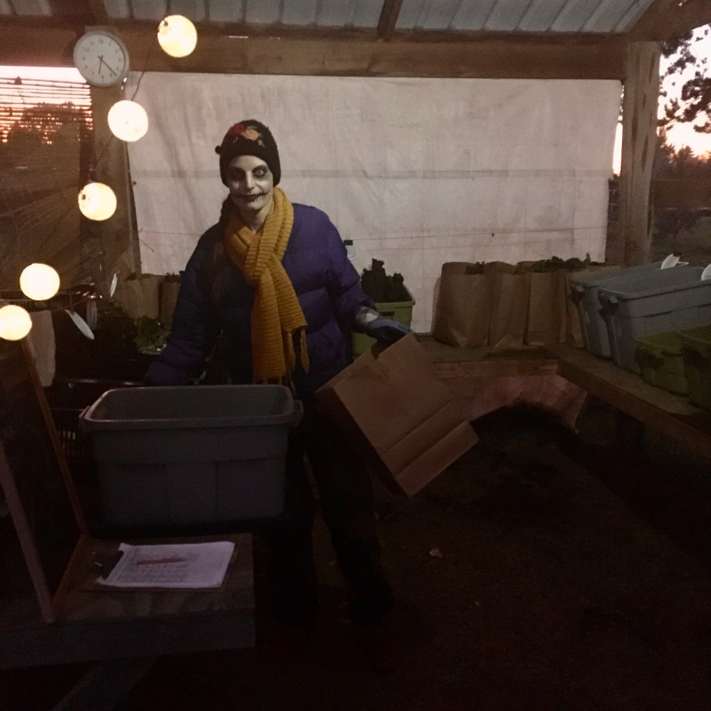 I haven’t been great about taking photos of people on the farm but here are a few of Tiiu that I do have from her years on the farm – my favorite is the one of working her first Halloween CSA pick-up in 2019!