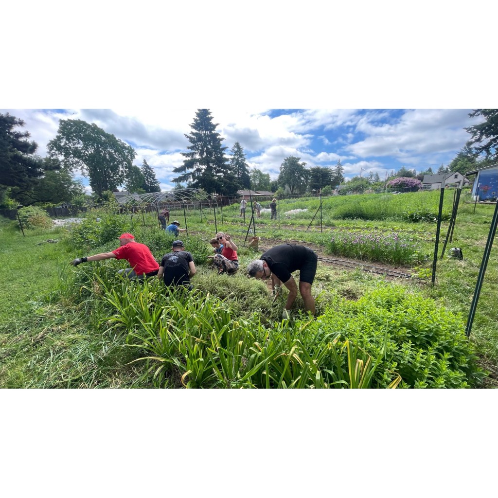Last Sunday’s work party was great! So many wonderful people of all ages getting so much done in just two hours of perfect working weather. All of the perennial herbs got pruned and weeded, cherry tomatoes got tied up and trellis strings are in place for the runner beans, the melons and annual herbs got hoed, and all of the bed edges were carefully hand mowed in the places we can’t reach with the BCS mower. The you pick area is looking great! Turned out that the first of the you-pick raspberries were ready, too!