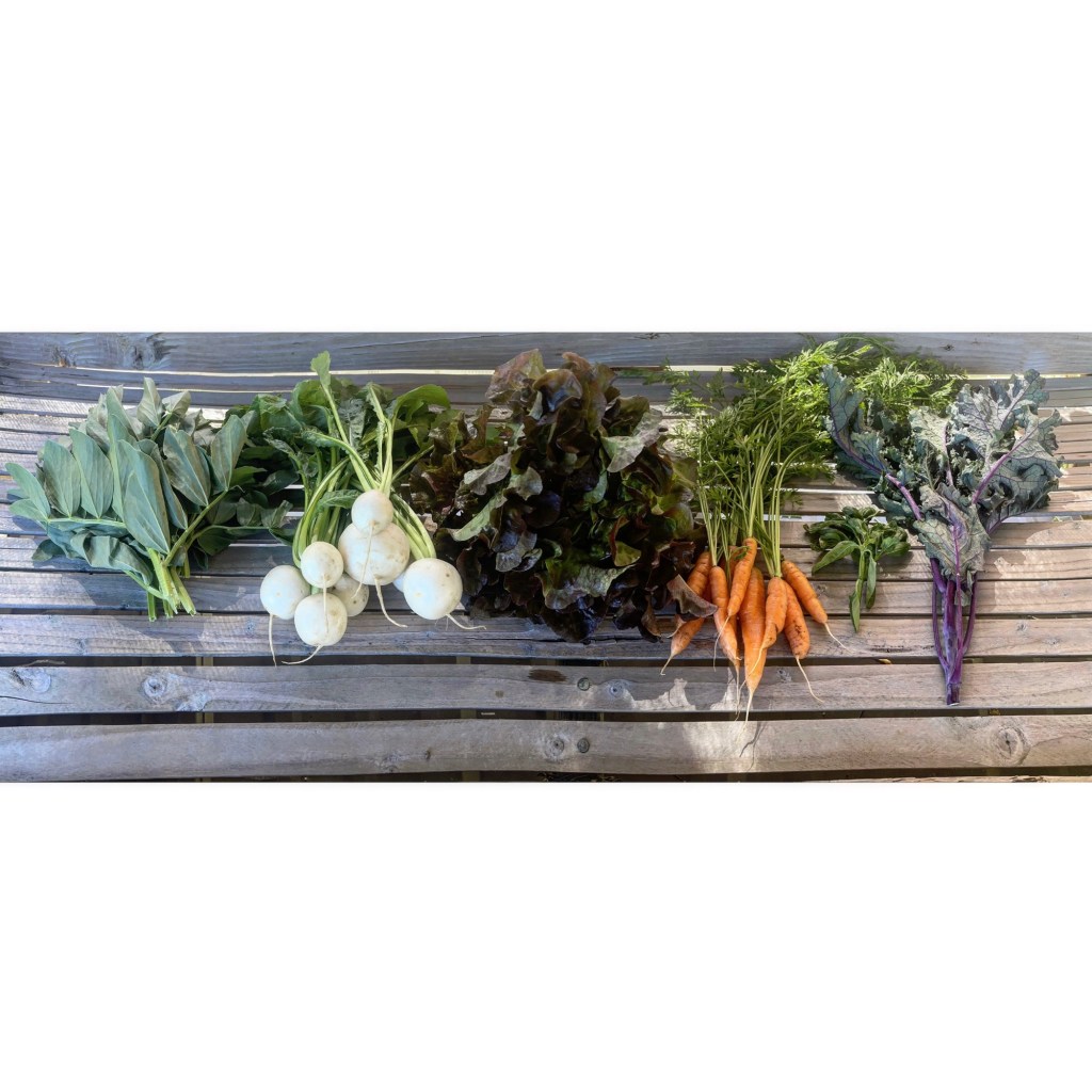 Even though we’ve had our first harvest there’s still time to get a summer share and we have three more to sell. The other folks distributing at the farm would also love to sell shares of mushrooms, kombucha and flowers so check our previous posts for links to details on those. On the farm stand this week we’ll have sample sizes of the kombucha if you’re not ready to commit with out trying it first. We should also have some extra lettuce and other items from the shares. Reports from the you-pick section was that there are lots of raspberries to pick so you might want to bring a container for those.